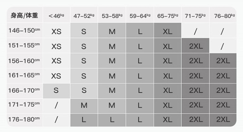 | 身高 | 147-152 | 152-157 | 157-162 | 162-167 | 167-172 |