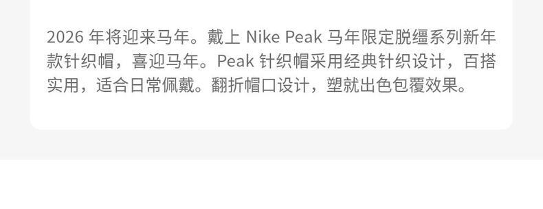 • NIKE耐克2026中性U NK PEAK BEANIE TC SWSH CNY针织帽IQ0982-133