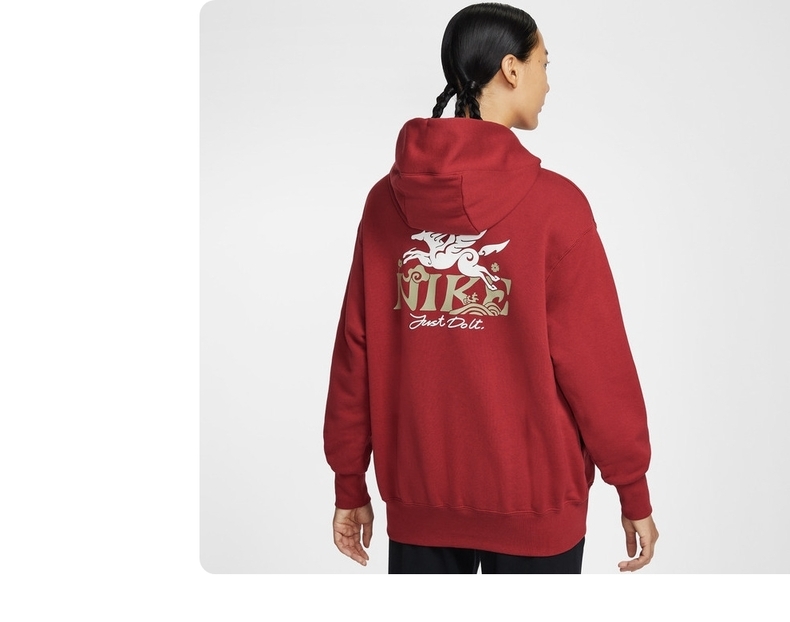 • NIKE耐克2026女子AS W NSW FLC OS PO HD CNY针织连帽卫衣IQ3826-613