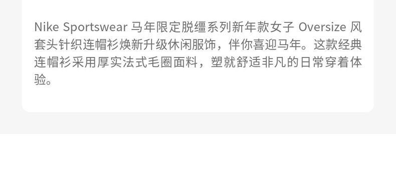 • NIKE耐克2026女子AS W NSW FLC OS PO HD CNY针织连帽卫衣IQ3826-133