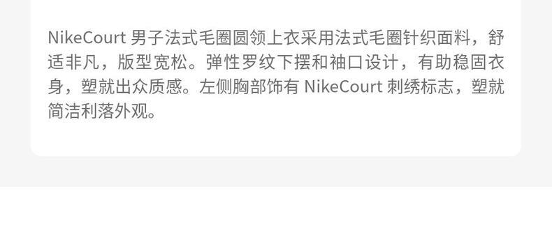 NIKE耐克2026男子AS M NK COURT FT CREW GCEL针织无帽卫衣IQ3972-100