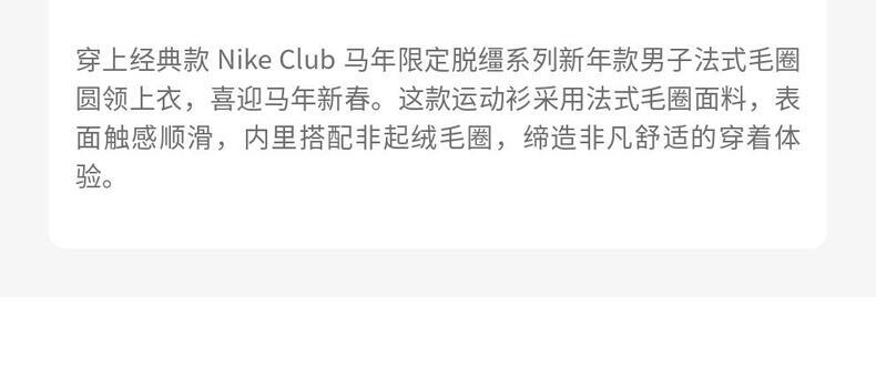 • NIKE耐克2026男子AS M NK CLUB FT CREW CNY针织无帽卫衣IR0102-657