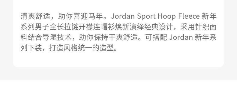 • JordanJordan2026男子AS M J DF SPRT HOOP FLC CNY针织连帽外套IR0112-236