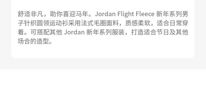 • JordanJordan2026男子AS M J FLT FLC CREW CNY针织无帽卫衣IR0113-613