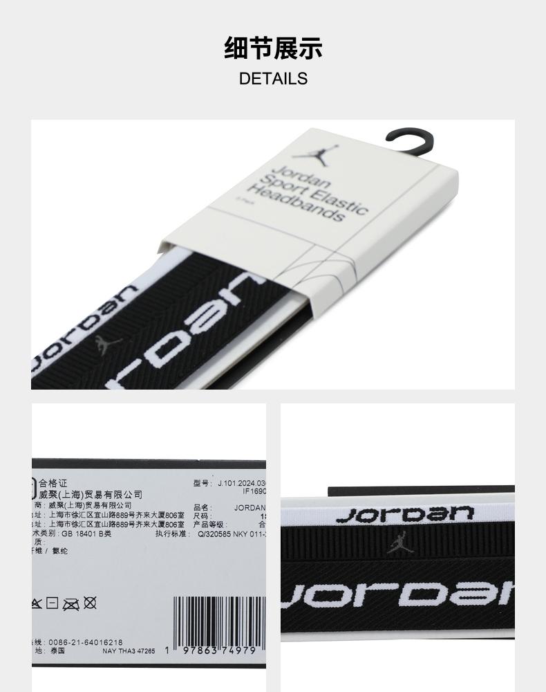 • NIKE耐克2025中性JORDAN ELASTIC SPORT MIXED WIDTH 发带(3条装)头带J1012024036OS