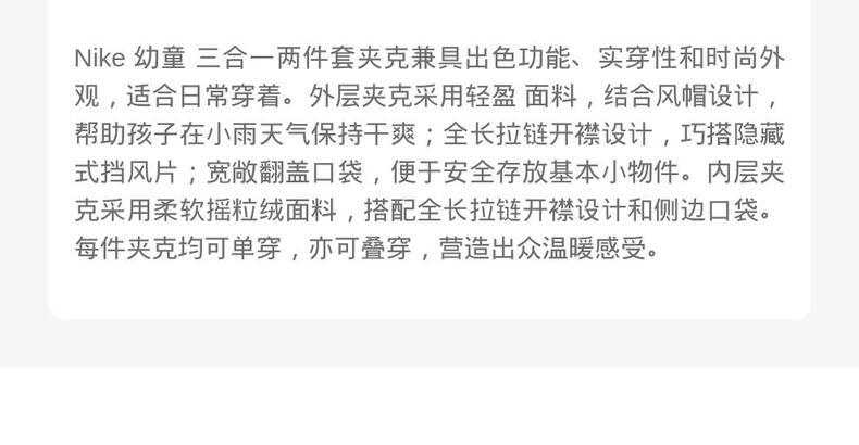 • Nike KidsNike Kids2025男小童棉服三合一厚棉服NY2542019PS-002