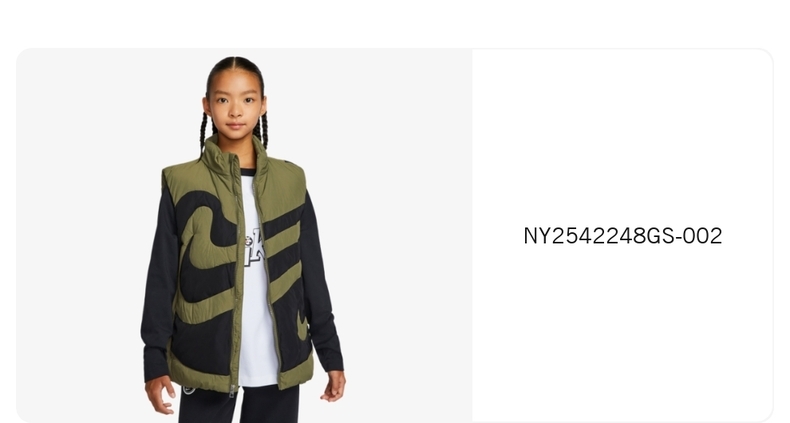 • Nike KidsNike Kids2025女大童羽绒马甲羽绒背心NY2542248GS-002