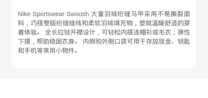Nike KidsNike Kids2025女大童羽绒马甲羽绒背心NY2542248GS-002