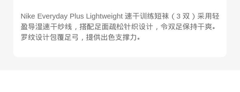 • NIKE耐克2025中性U NK EVRY PLUS LTWT ANKLE 3PR中袜优惠装SX6893-913