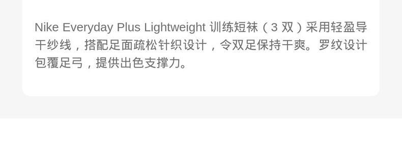 • NIKE耐克2025中性U NK EVRY PLS LTWT ANK 3PR 132中袜优惠装SX6893-911