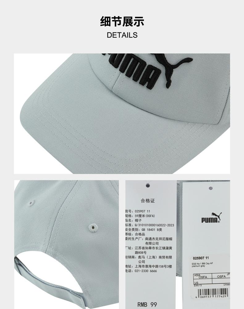 • puma彪马2025中性中性-ESS No.1 BB Cap AF-铂金灰弯沿帽02590711