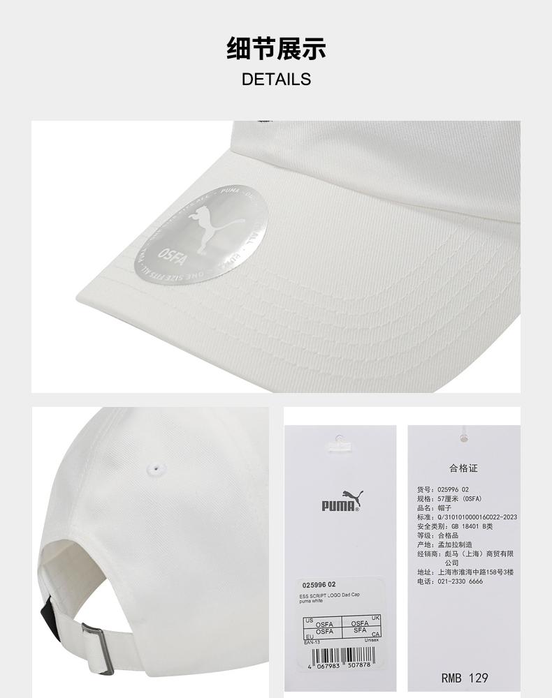 • puma彪马2025中性中性-ESS SCRIPT LOGO Dad Cap-彪马白弯沿帽02599602
