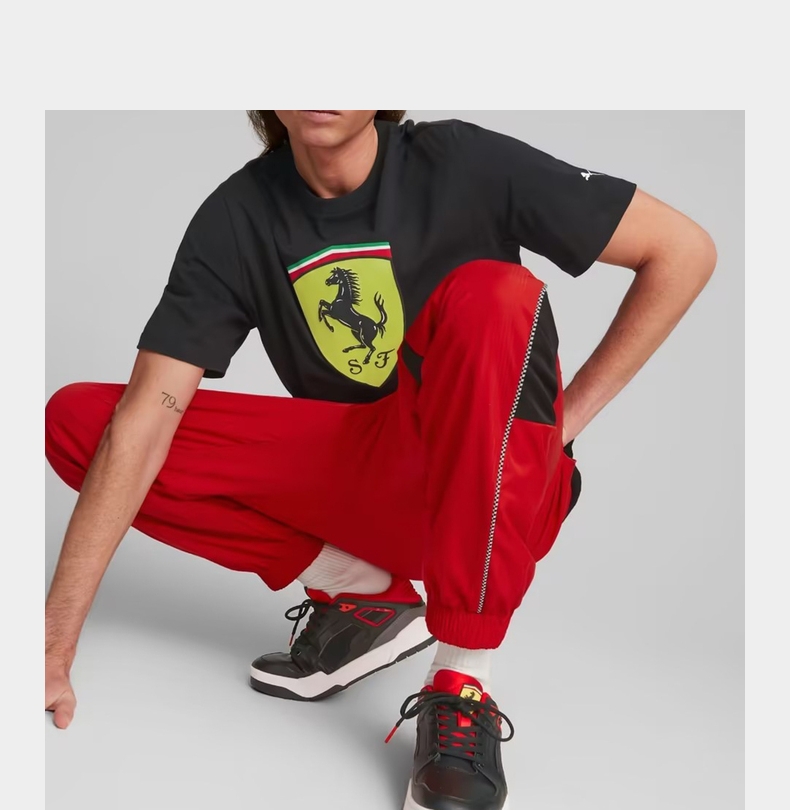 puma彪马2024男子男子-Ferrari Race Big Shield T-黑色针织无领短T53817501