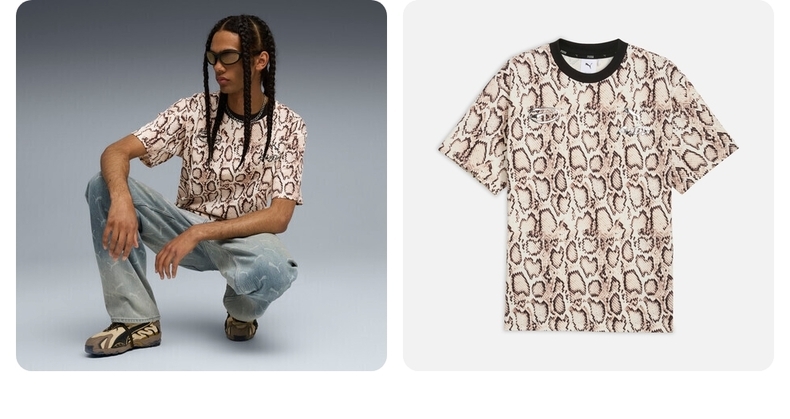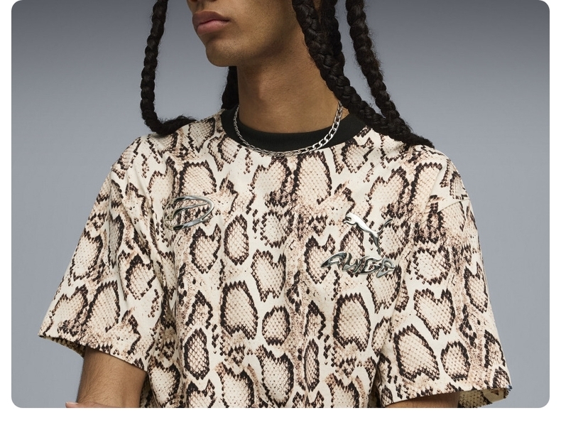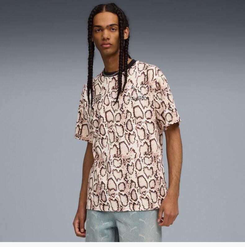 • puma彪马2025中性中性-PUMA X A$AP ROCKY Snakeskin Tee-米白色-全印花针织无领短T63523936