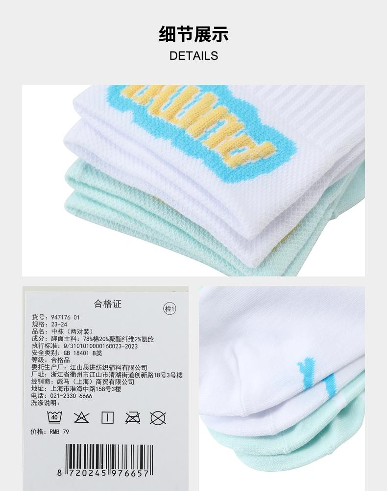 puma彪马2025中性中性-Puma U Sock 2P-白色- light blue中袜94717601