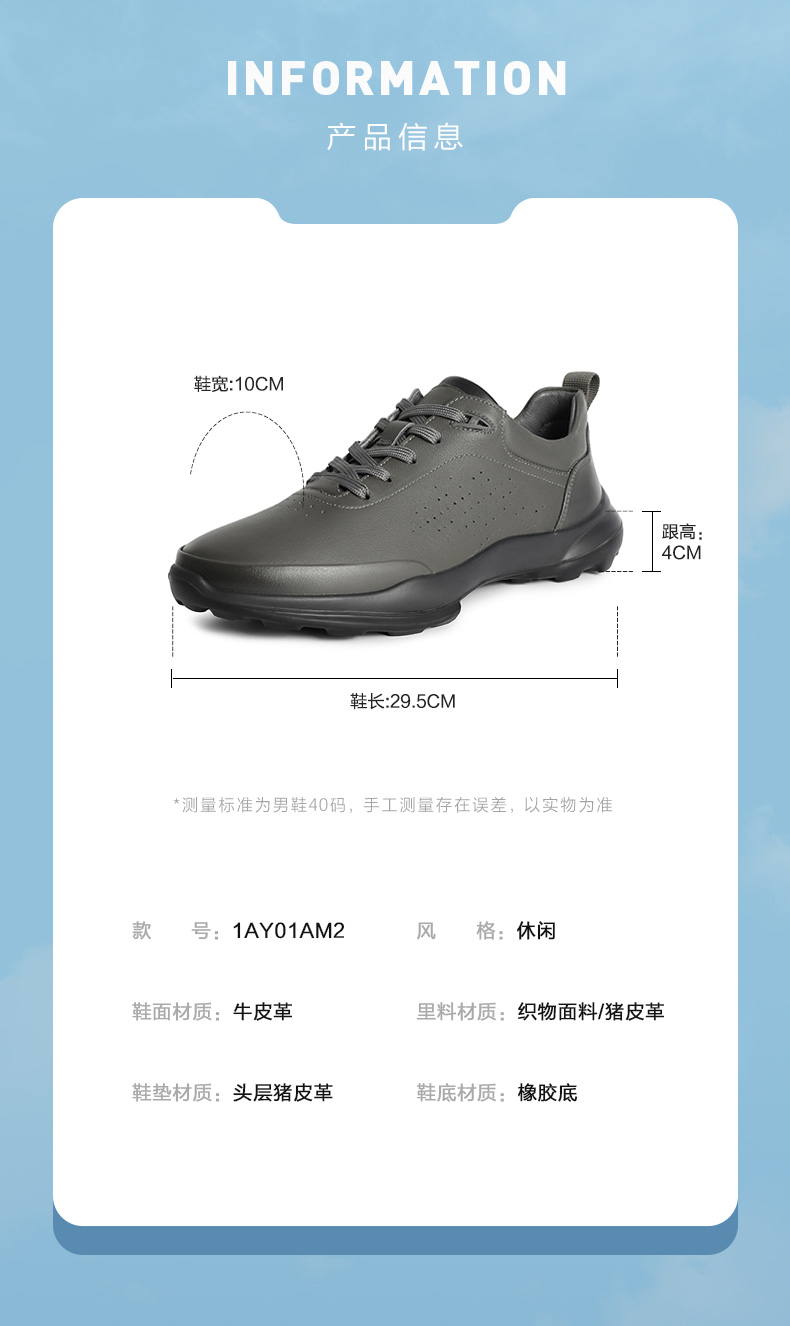 | 适用场合:日常休闲 | 闭合方式:系带 | 所在区域:电子商务 | 40码鞋宽参考(男):10CM | 风格分类:健步鞋 |