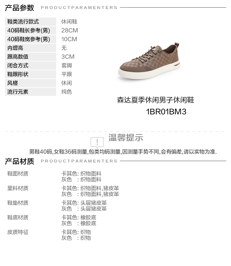 | 风格:休闲 | 色系:卡其 | 跟高数值:3CM | 40码鞋宽参考(男):10CM | 性别:男子 |