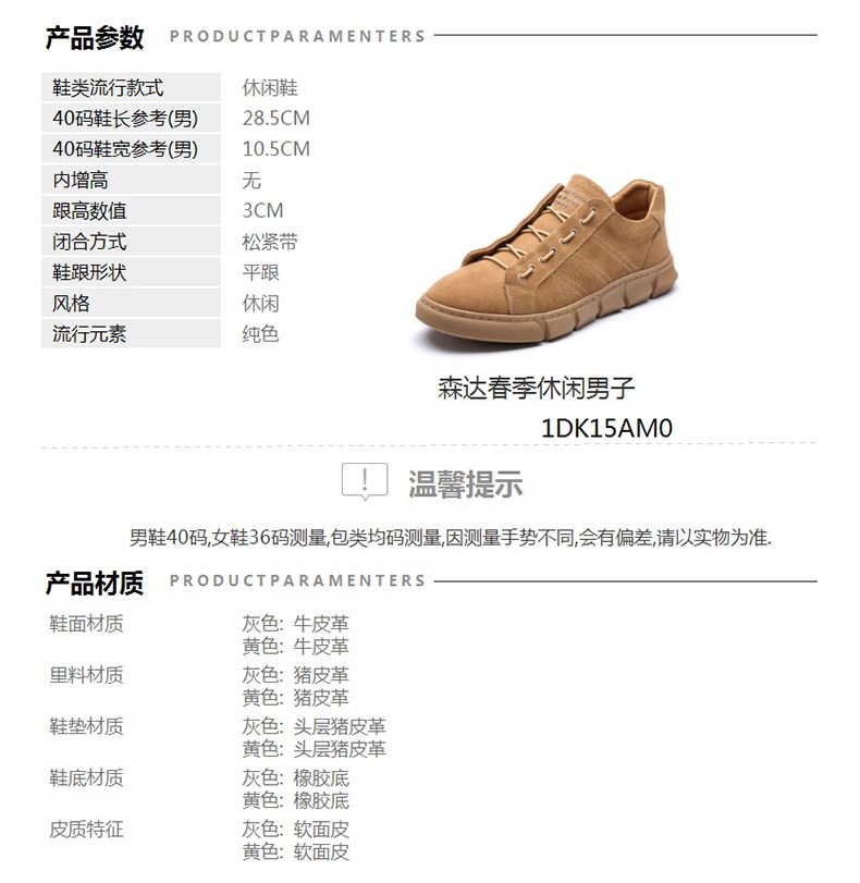 | 40码鞋长参考(男):28.5CM | 鞋头款式:圆头 | 鞋底材质:橡胶底 | 鞋面图案:纯色 | 内增高:无 |