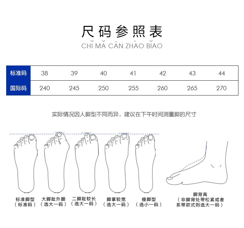 | 40码鞋长参考(男):28CM | 鞋头款式:圆头 | 鞋底材质:橡胶底 | 鞋面图案:纯色 | 内增高:无 |