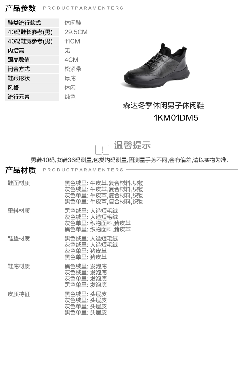 • 森达运动健步鞋2025冬季新款行走厚底户外休闲鞋1KM01DM5