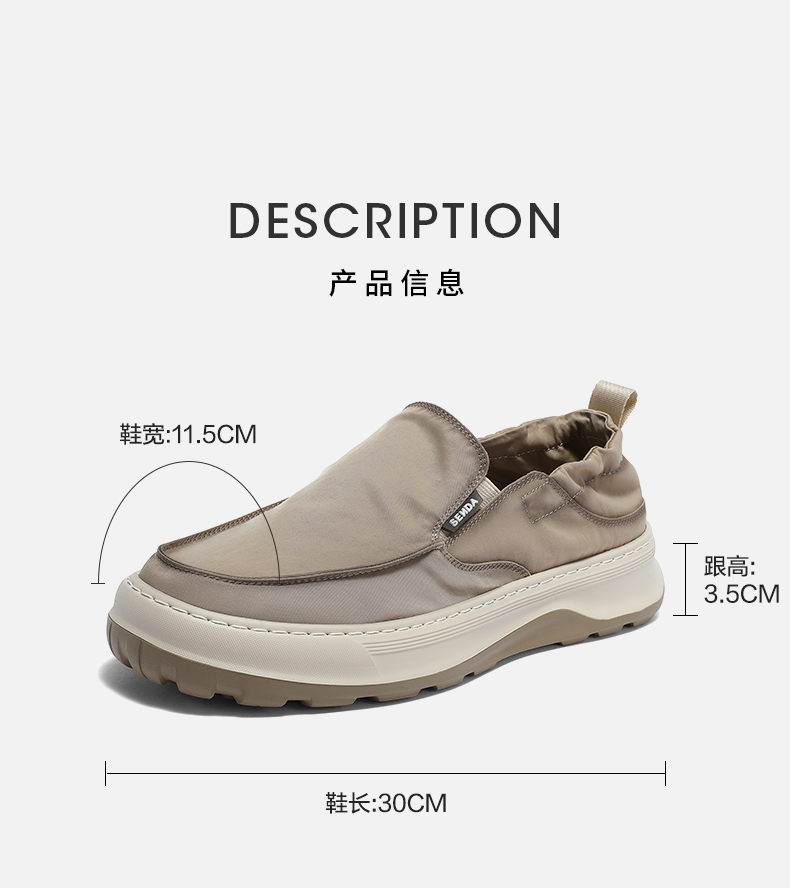 | 风格:休闲 | 色系:卡其 | 跟高数值:3.5CM | 40码鞋宽参考(男):11.5CM | 性别:男子 |