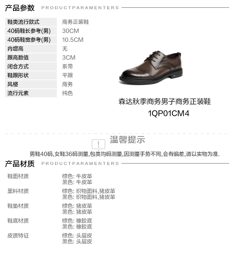 | 风格分类:正装皮鞋 | 上市时间:2024年秋季 | 生产/经销/进口厂家:江苏新森达鞋业有限公司 | 鞋类流行款式:商务正装鞋 | 鞋头款式:圆头 |