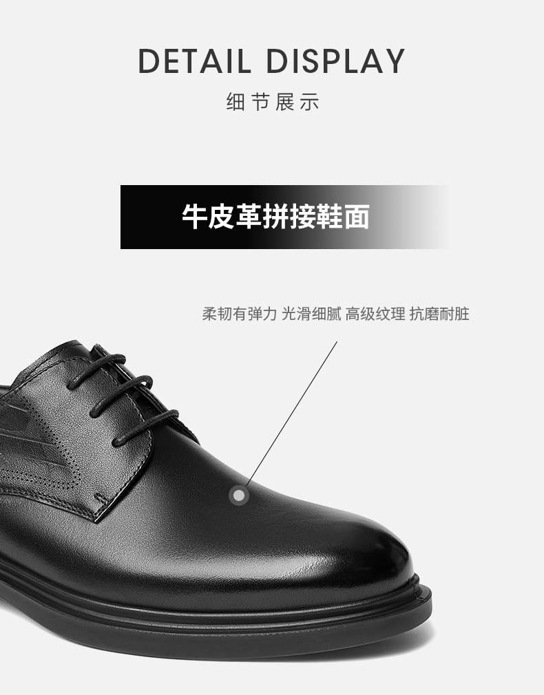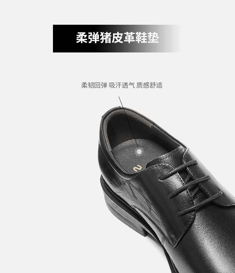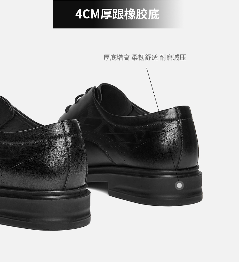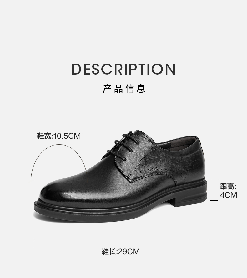 | 风格:商务 | 色系:黑色 | 跟高数值:4CM | 40码鞋宽参考(男):10.5CM | 性别:男子 |