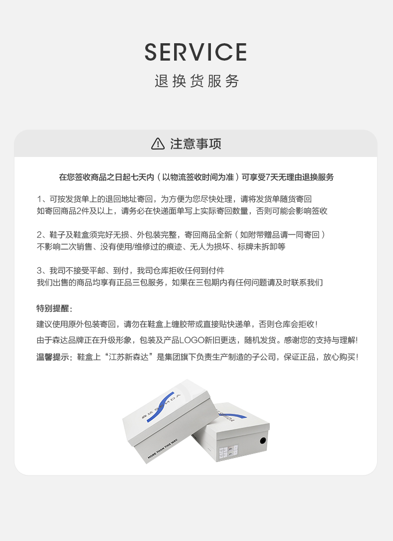SENDA(森达),品牌成立于1977年,拥有40年发展史,秉承舒适的制鞋理念,从用料到工艺都经过严格质量把控。男鞋以舒适质感著称,覆盖商务正装、商务休闲、时尚休闲三大系列,适用不同场合的需求,同时开发摩克、加州等一系列功能性鞋履,行走体验;女鞋以款式优雅、穿着舒适为主要特征,依时尚潮流添加当季设计元素,每季推出时尚、休闲等系列鞋款,为都市白领提供不同场合的搭配需求。目前门店已覆盖近百座城市,数量达1800多家。