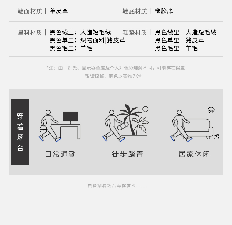 | 里料材质:织物面料猪皮革 | 制鞋工艺:胶贴皮鞋 | 鞋垫材质:猪皮革 | 款式季节:冬季 | 皮质特征:头层皮 |