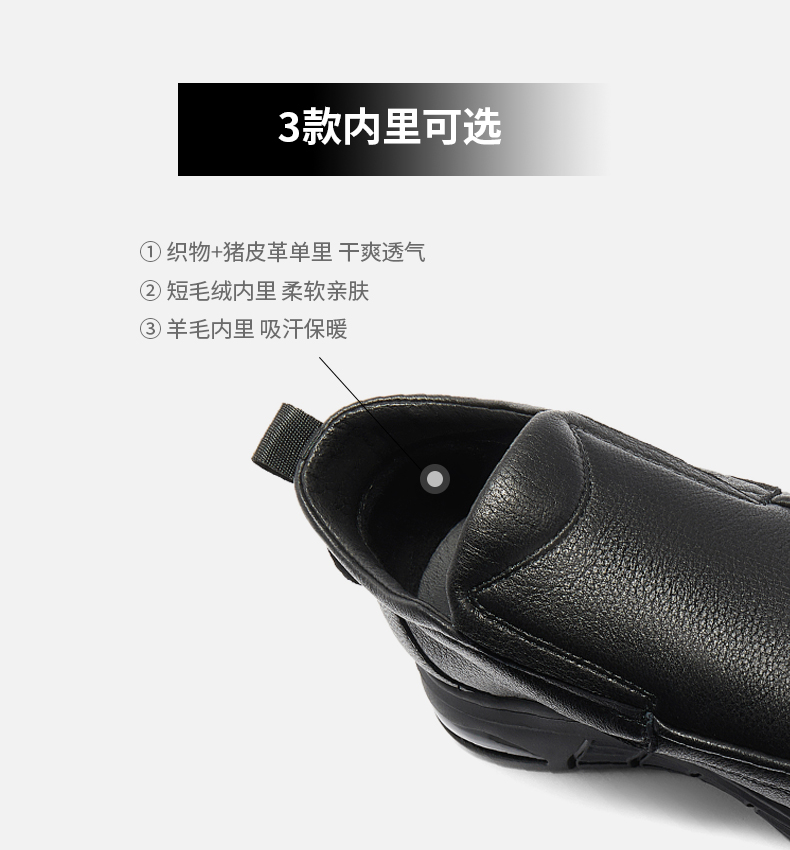 | 筒高数值:8CM | 性别:男子 | 靴筒筒面材质:羊皮革 | 里料材质:人造短毛绒 | 制鞋工艺:胶贴皮鞋 |