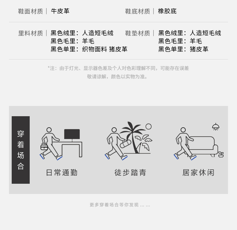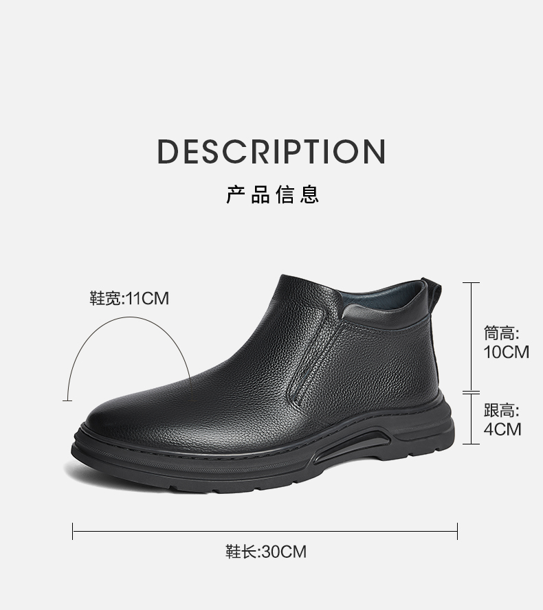 | 里料材质:织物面料猪皮革 | 制鞋工艺:胶贴皮鞋 | 鞋垫材质:猪皮革 | 款式季节:冬季 | 皮质特征:头层皮 |