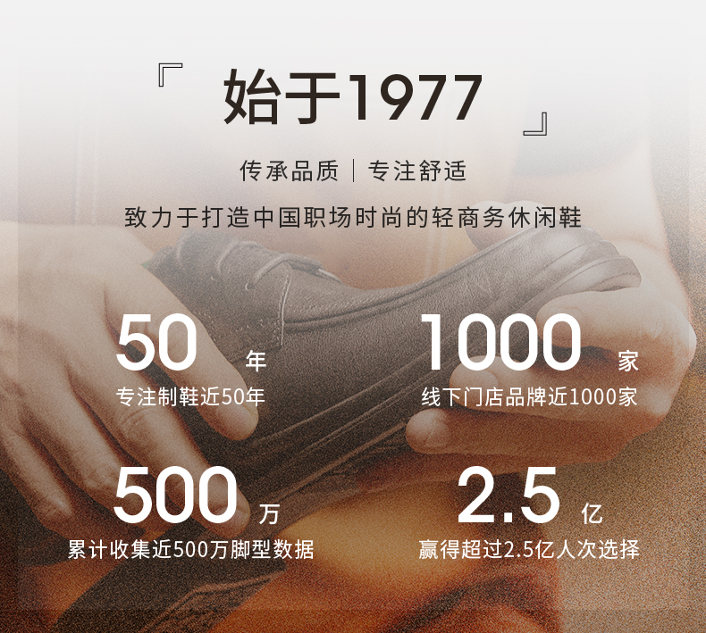 SENDA(森达),品牌成立于1977年,拥有40年发展史,秉承舒适的制鞋理念,从用料到工艺都经过严格质量把控。男鞋以舒适质感著称,覆盖商务正装、商务休闲、时尚休闲三大系列,适用不同场合的需求,同时开发摩克、加州等一系列功能性鞋履,行走体验;女鞋以款式优雅、穿着舒适为主要特征,依时尚潮流添加当季设计元素,每季推出时尚、休闲等系列鞋款,为都市白领提供不同场合的搭配需求。目前门店已覆盖近百座城市,数量达1800多家。
