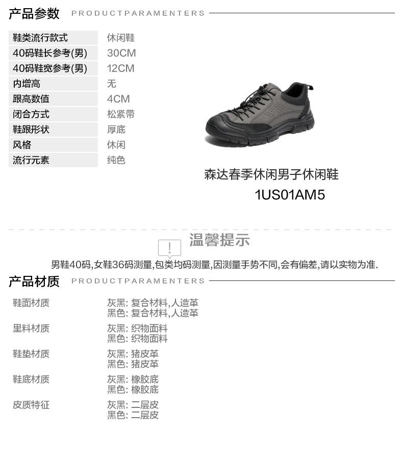 | 风格:休闲 | 色系:灰色 | 跟高数值:4CM | 40码鞋宽参考(男):12CM | 性别:男子 |