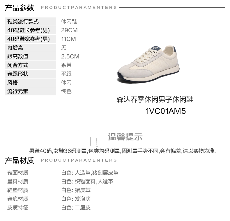 | 风格:休闲 | 色系:白色 | 跟高数值:2.5CM | 40码鞋宽参考(男):11CM | 性别:男子 |