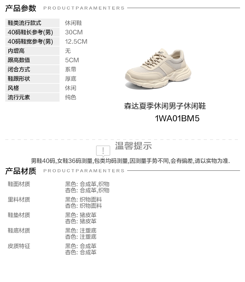 | 风格:休闲 | 色系:棕色 | 跟高数值:5CM | 40码鞋宽参考(男):12.5CM | 性别:男子 |