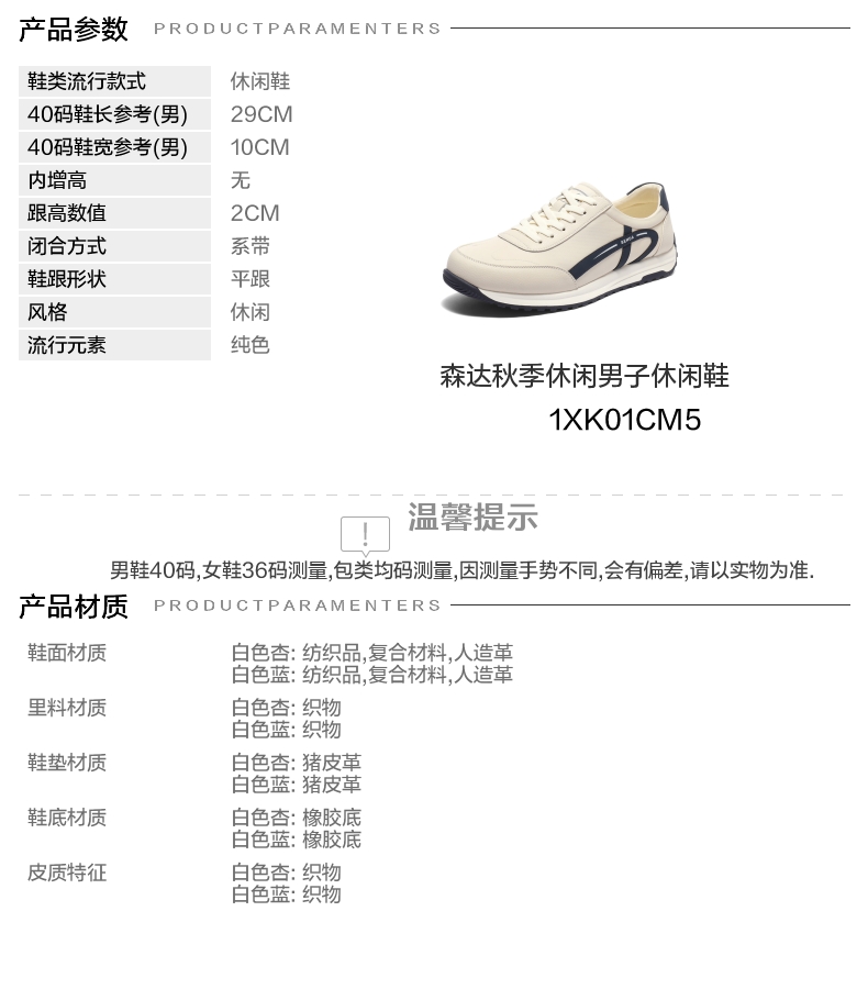 | 风格:休闲 | 色系:白色 | 跟高数值:2CM | 40码鞋宽参考(男):10CM | 性别:男子 |