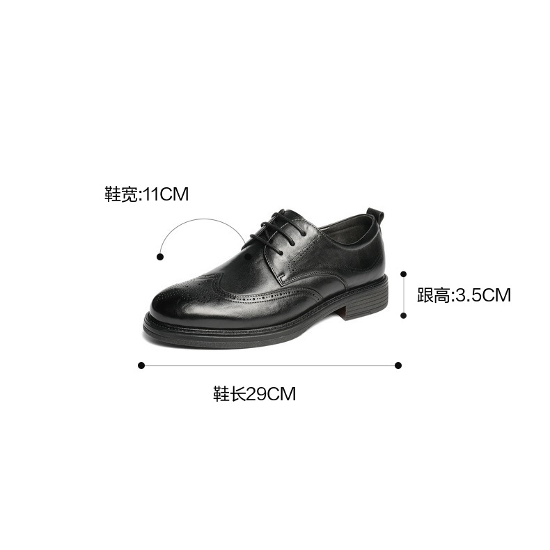 | 风格:商务 | 色系:黑色 | 跟高数值:3.5CM | 40码鞋宽参考(男):11CM | 性别:男子 |