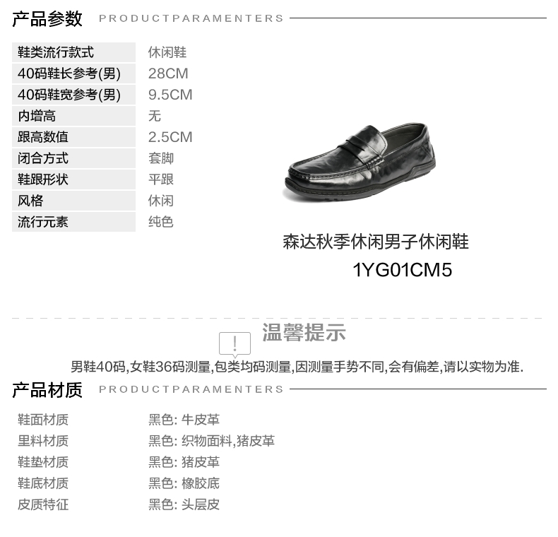 | 风格:休闲 | 色系:黑色 | 跟高数值:2.5CM | 40码鞋宽参考(男):9.5CM | 性别:男子 |
