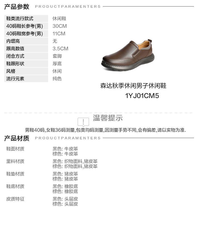 | 风格:休闲 | 色系:棕色 | 跟高数值:3.5CM | 40码鞋宽参考(男):11CM | 性别:男子 |