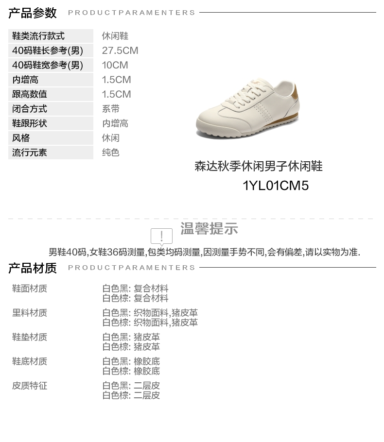 | 风格:休闲 | 色系:黑色 | 跟高数值:1.5CM | 40码鞋宽参考(男):10CM | 性别:男子 |