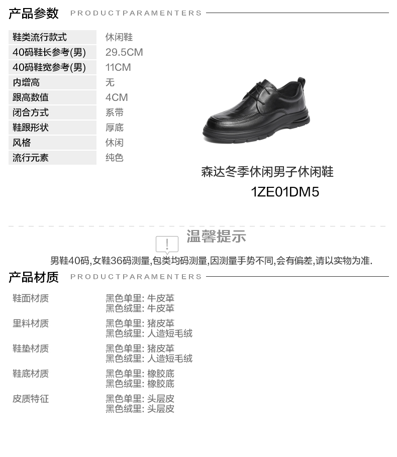 | 风格:休闲 | 色系:黑色 | 跟高数值:4CM | 40码鞋宽参考(男):11CM | 性别:男子 |