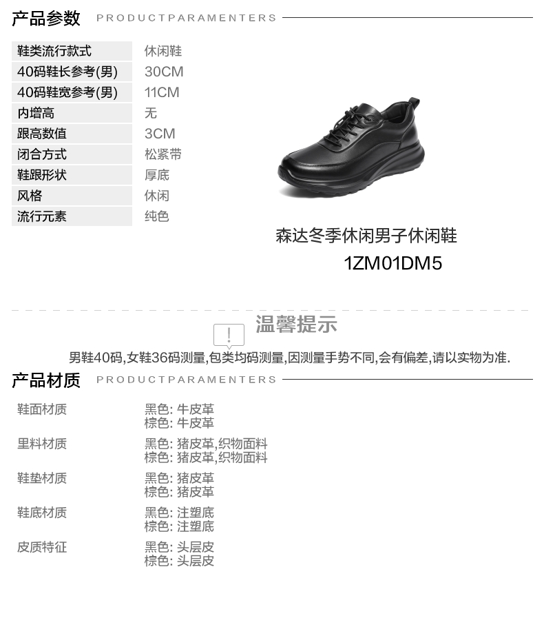 | 风格:休闲 | 色系:黑色 | 跟高数值:3CM | 40码鞋宽参考(男):11CM | 性别:男子 |