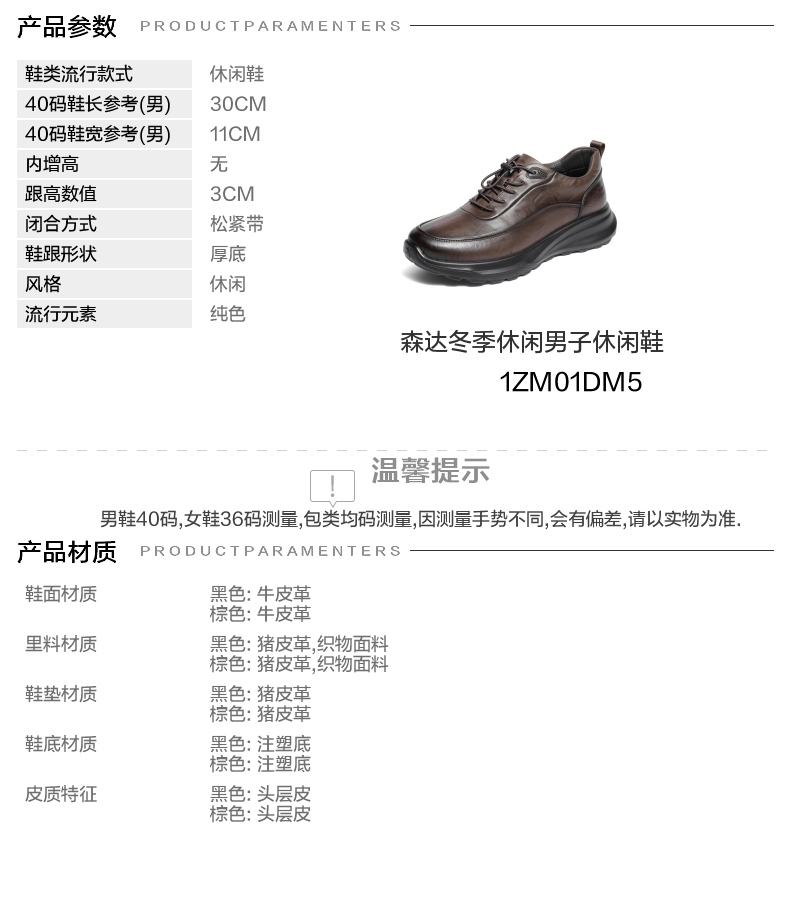 | 风格:休闲 | 色系:棕色 | 跟高数值:3CM | 40码鞋宽参考(男):11CM | 性别:男子 |
