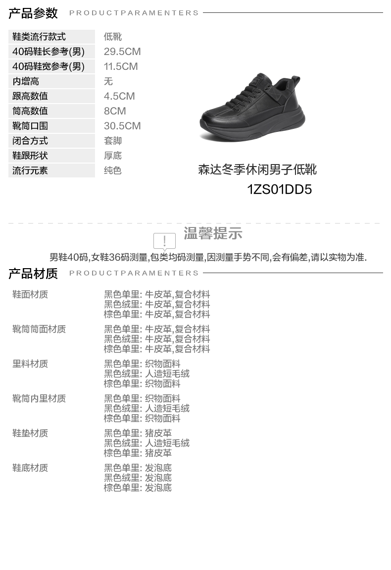 | 闭合方式:套脚 | 40码鞋宽参考(男):11.5CM | 靴筒口围:30.5CM | 上市时间:2025年冬季 | 鞋类流行款式:低靴 |