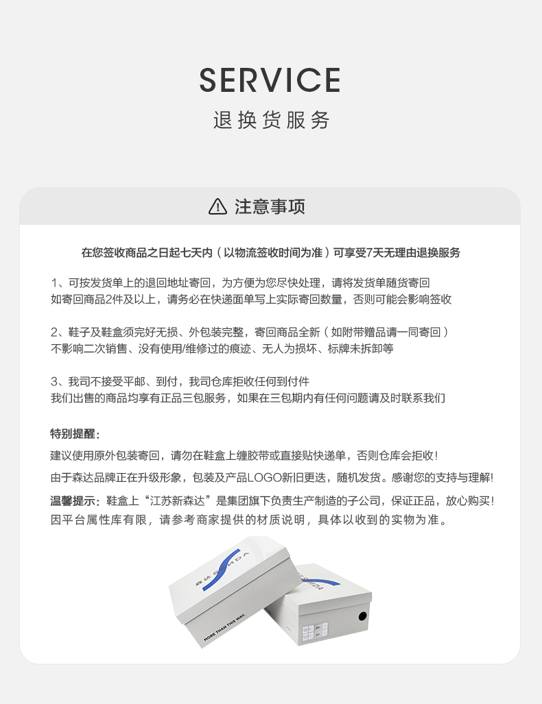SENDA(森达),品牌成立于1977年,拥有40年发展史,秉承舒适的制鞋理念,从用料到工艺都经过严格质量把控。男鞋以舒适质感著称,覆盖商务正装、商务休闲、时尚休闲三大系列,适用不同场合的需求,同时开发摩克、加州等一系列功能性鞋履,行走体验;女鞋以款式优雅、穿着舒适为主要特征,依时尚潮流添加当季设计元素,每季推出时尚、休闲等系列鞋款,为都市白领提供不同场合的搭配需求。目前门店已覆盖近百座城市,数量达1800多家。