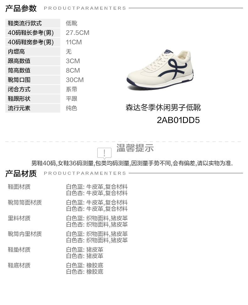 | 闭合方式:系带 | 40码鞋宽参考(男):11CM | 靴筒口围:30CM | 上市时间:2025年冬季 | 鞋类流行款式:低靴 |