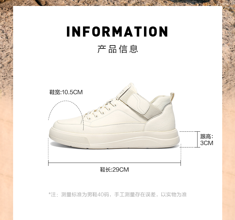 | 40码鞋长参考(男):29CM | 鞋帮:低帮 | 鞋头款式:圆头 | 鞋底材质:橡胶底 | 鞋面图案:纯色 |