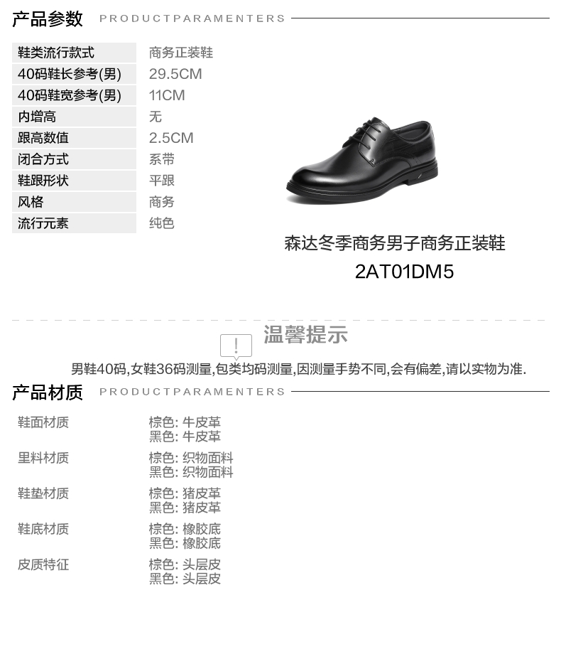 | 风格:商务 | 色系:黑色 | 跟高数值:2.5CM | 40码鞋宽参考(男):11CM | 性别:男子 |