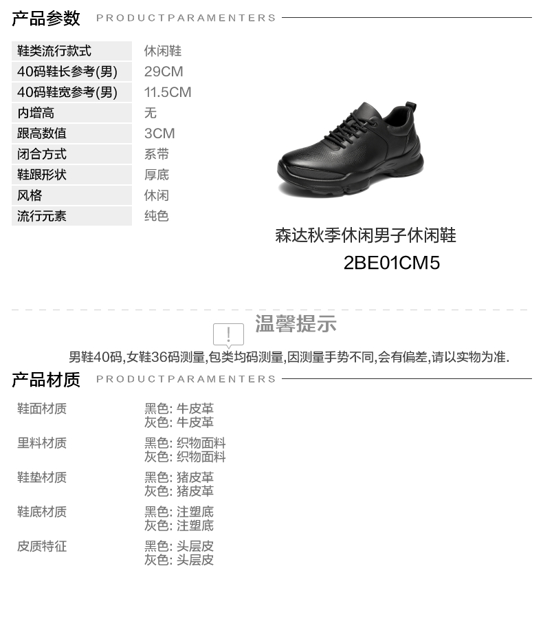 | 风格:休闲 | 色系:黑色 | 跟高数值:3CM | 40码鞋宽参考(男):11.5CM | 性别:男子 |