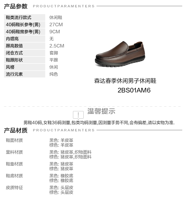 | 风格:休闲 | 色系:棕色 | 跟高数值:2.5CM | 40码鞋宽参考(男):9CM | 性别:男子 |